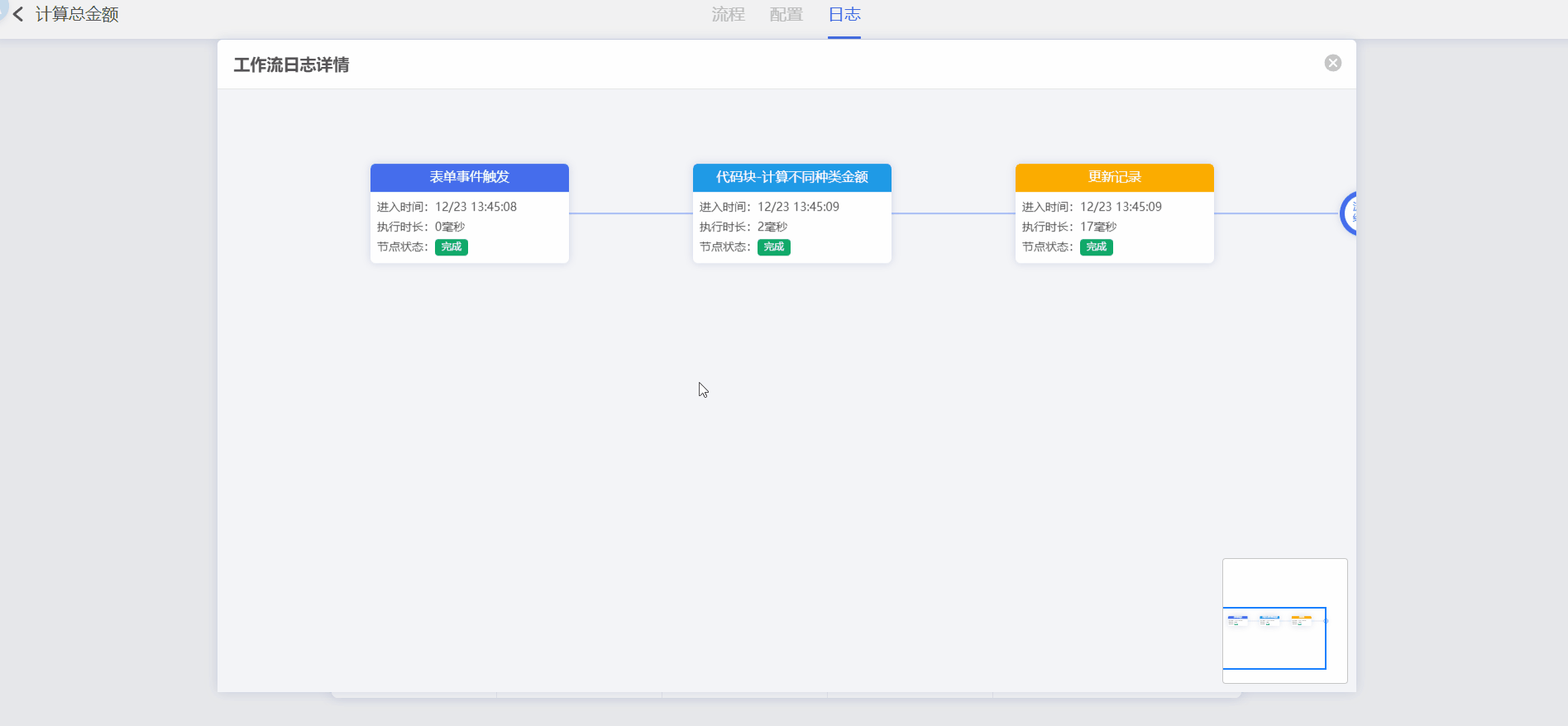 在流程日志中查看输入输出数据: