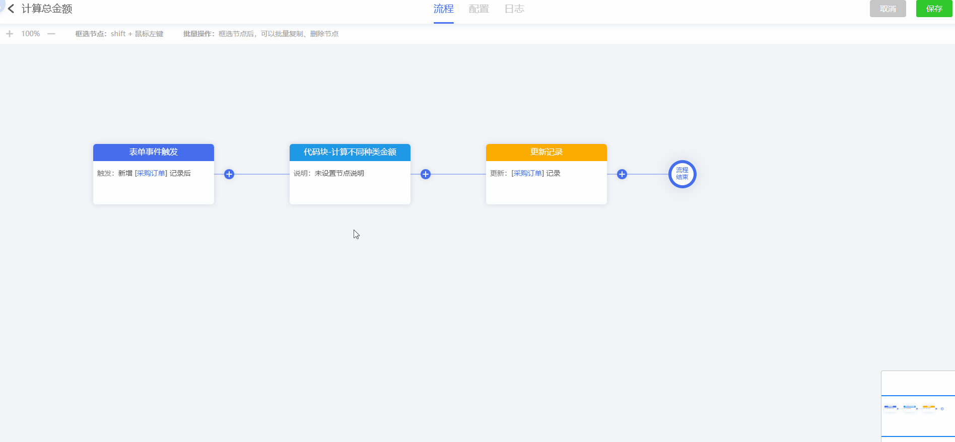 查看 流程日志 ,可以看到 代码块 的填充情况和更新情况