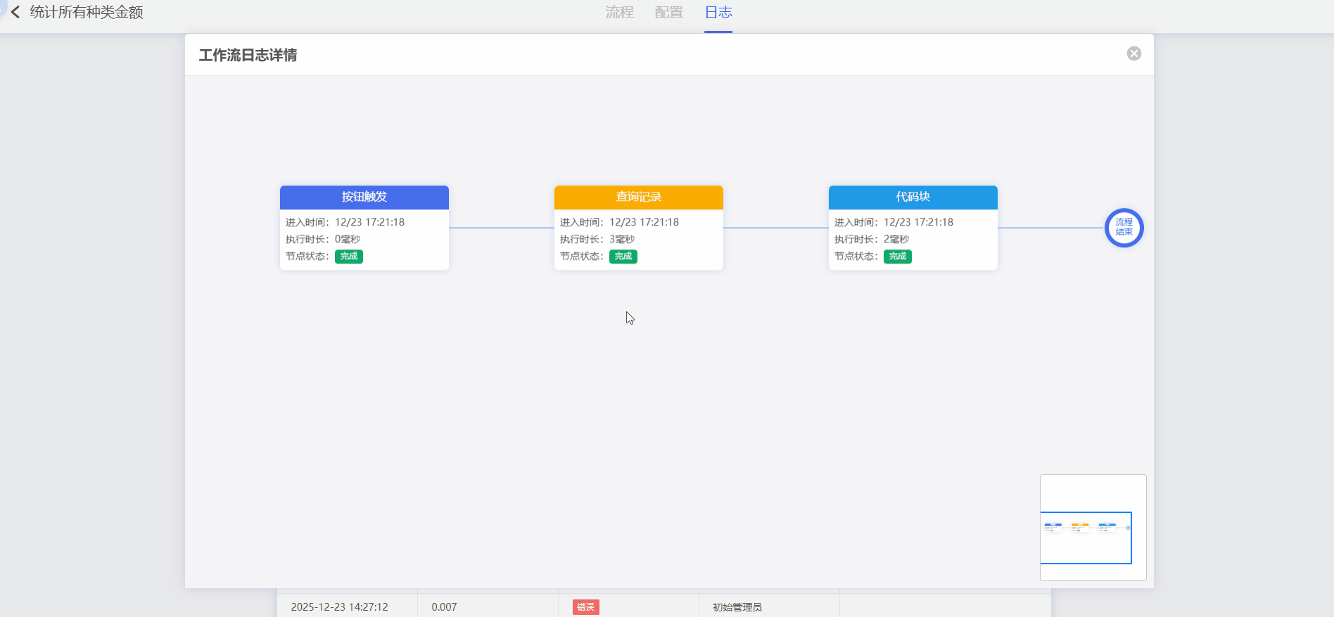 查看 流程日志 ,可以查看工作流的执行情况,这里可以看到转换的中文日期和更新的记录条数
