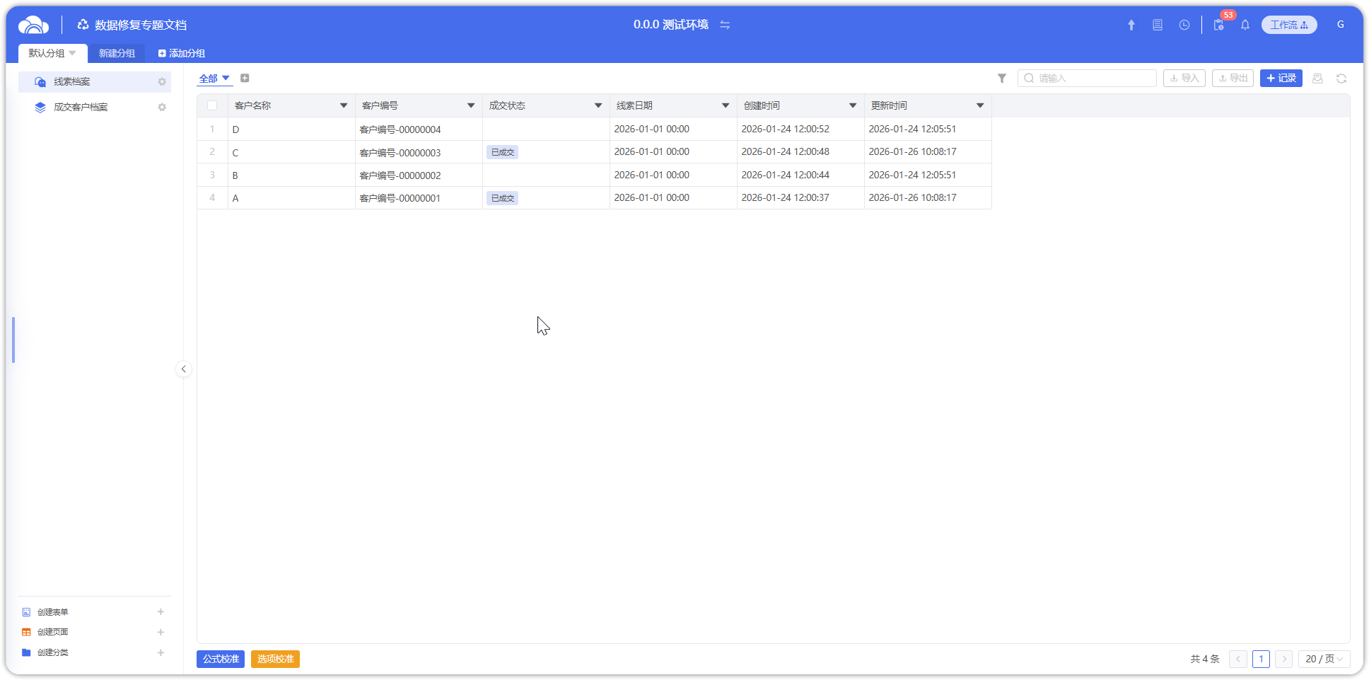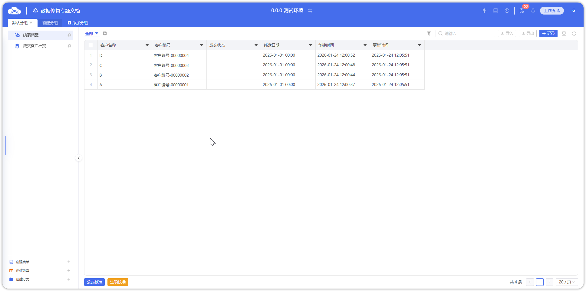 此时对所有【线索档案】记录,满足第一项数据修复需求。