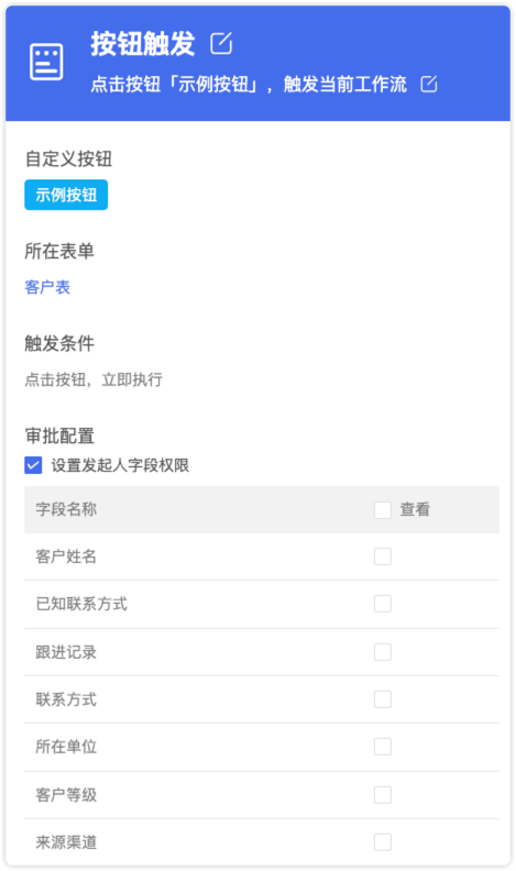 对视图启用的按钮,选择记录并执行按钮后,触发节点会包含选择记录的数据以供后续节点使用